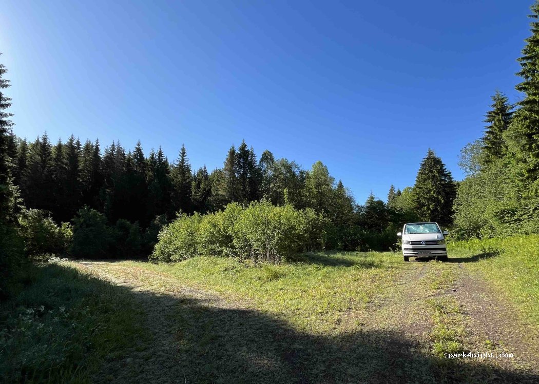 Lage mitten im Wald, Weg problemlos befahrbar, Anreise mit Van oder Wohnmobil möglich. Es ist Platz für mehrere Fahrzeuge. Sehr ruhiger Ort, perfekt zum Übernachten.