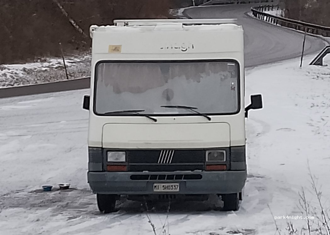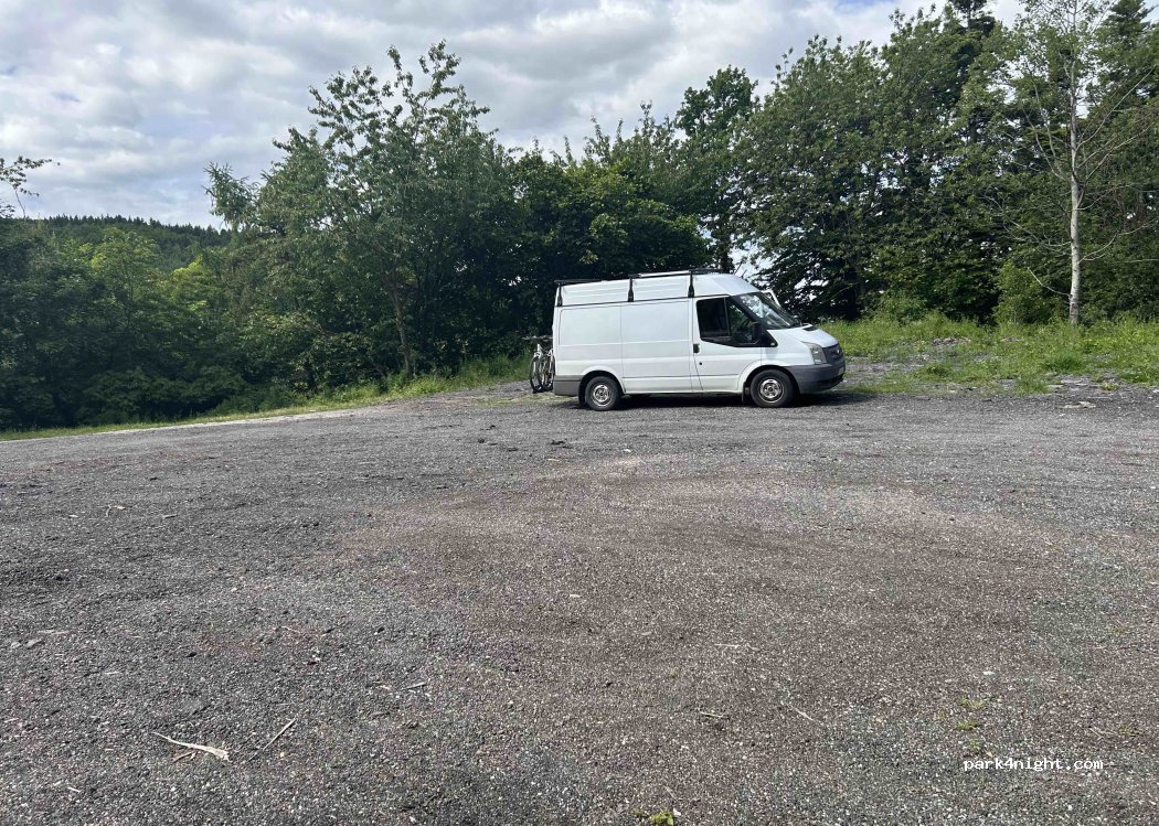 Belle et grande place de parking en asphalte/terre. Nous y avons passé une nuit, seuls. C'est juste au bord d'une grande route, il n'y avait pas beaucoup de monde cette nuit-là. Merci de ne pas laisser de déchets, il y en avait pas mal, mais nous avons essayé de ramasser la plupart.