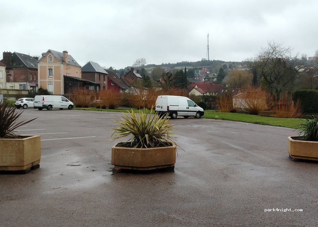 Parking spacieux en bord de rivière. Bonne étape pour y passer une nuit. Un petit bémol. Proche d'une route passante car proche de DIEPPE.