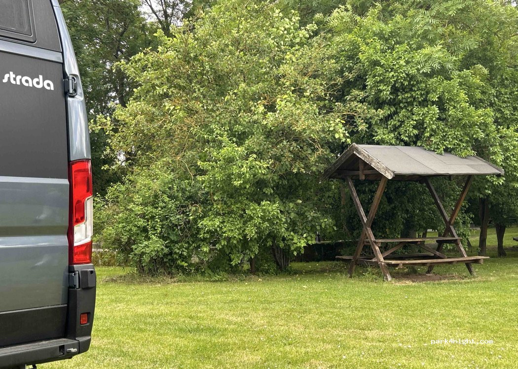 Wir haben darauf verzichtet, auf die Rasenfläche zu fahren, da laut Aushang darum gebeten wird nicht mit PKW darauf zu fahren. Wir haben eine ruhige Nacht auf dem angrenzenden Parkplatz verbracht und bedanken uns dafür, dass das möglich ist. Nach einem Spaziergang an der Unstrut am nächsten Morgen sind wir weiter gefahren.
