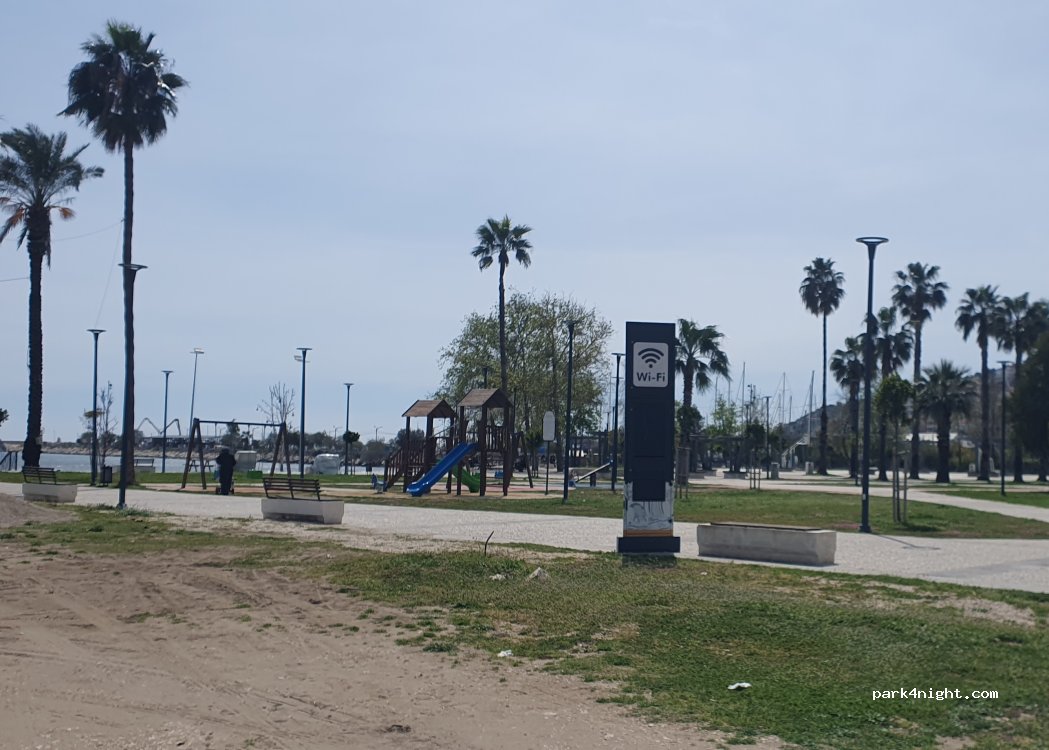 Çok güzel bir park yeri, tuvalet ve su var. Deniz kenarına, yürüyüş yoluna ve marketlere yakın.