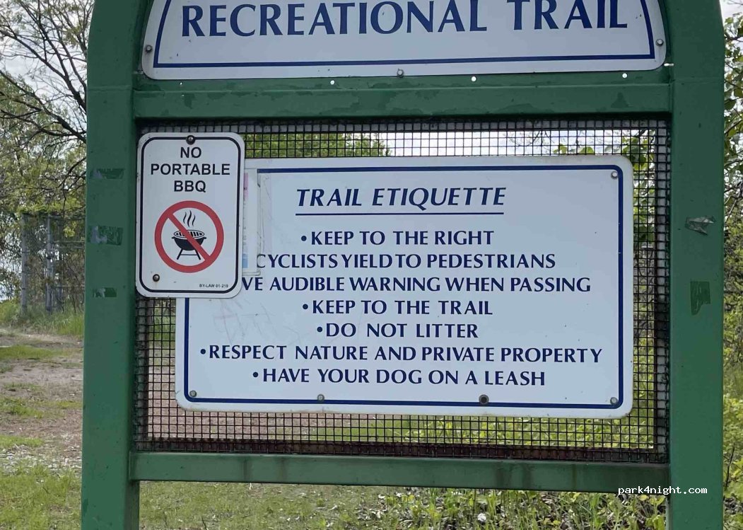 Zona con pequeño parking, lavabos, y acceso al lago de Ontario y un grifo para rellenar botellas pequeñas y otro detrás del edificio con buen caudal. Con carril para ir en bici o patines junto al lago. Solo paramos a rellenar agua, no vemos cartel de no pernoctar, no sabemos si es posible. Cuidemos el entorno y respetemos estos espacios para que nos dejen seguir disfrutando de ellos.