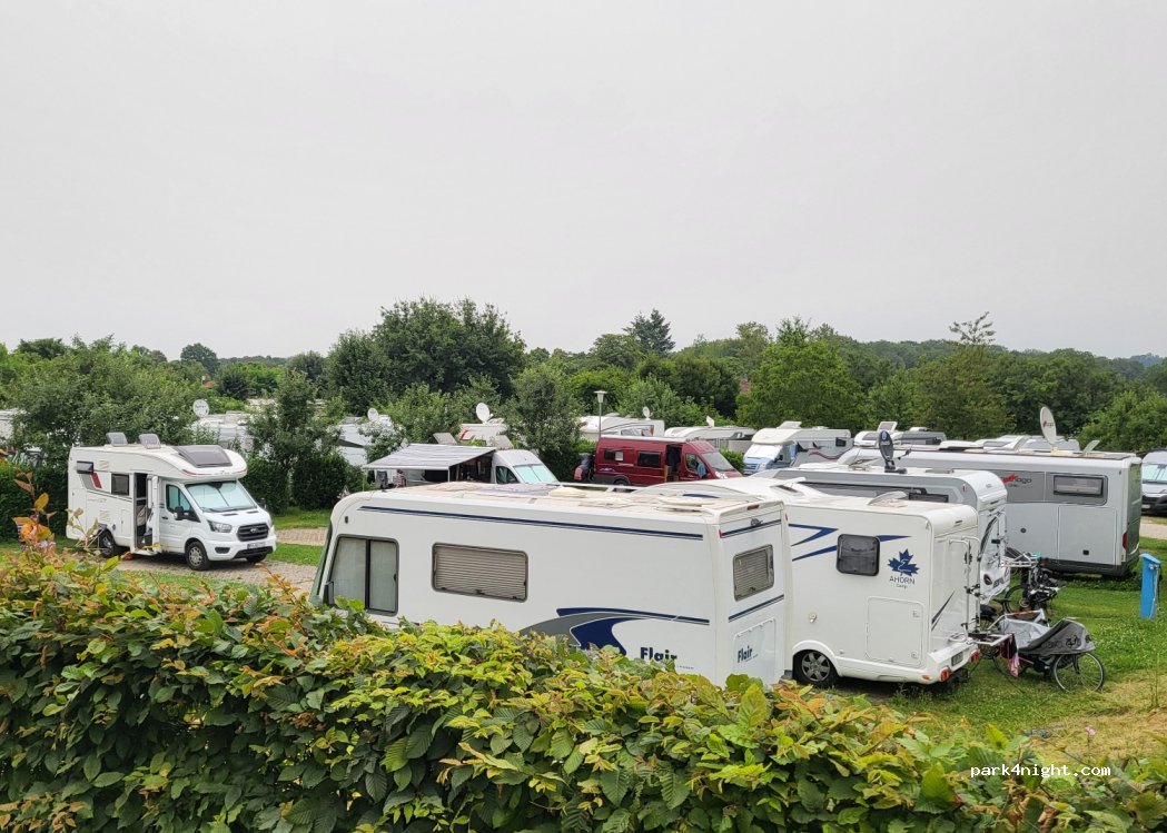 Für Womos gibt es neben dem traditionellen Campingplatz einen eigenen Bereich. Der Bereich für das Fahrzeug ist gepflastert, daneben sind 3-4m Rasen. Reicht allemal. Strom gibt es am Stellplatz. Duschen können gegen Gebühr vom Campingplatz mit benutzt werden. Alles sehr sauber. Gerne wieder.