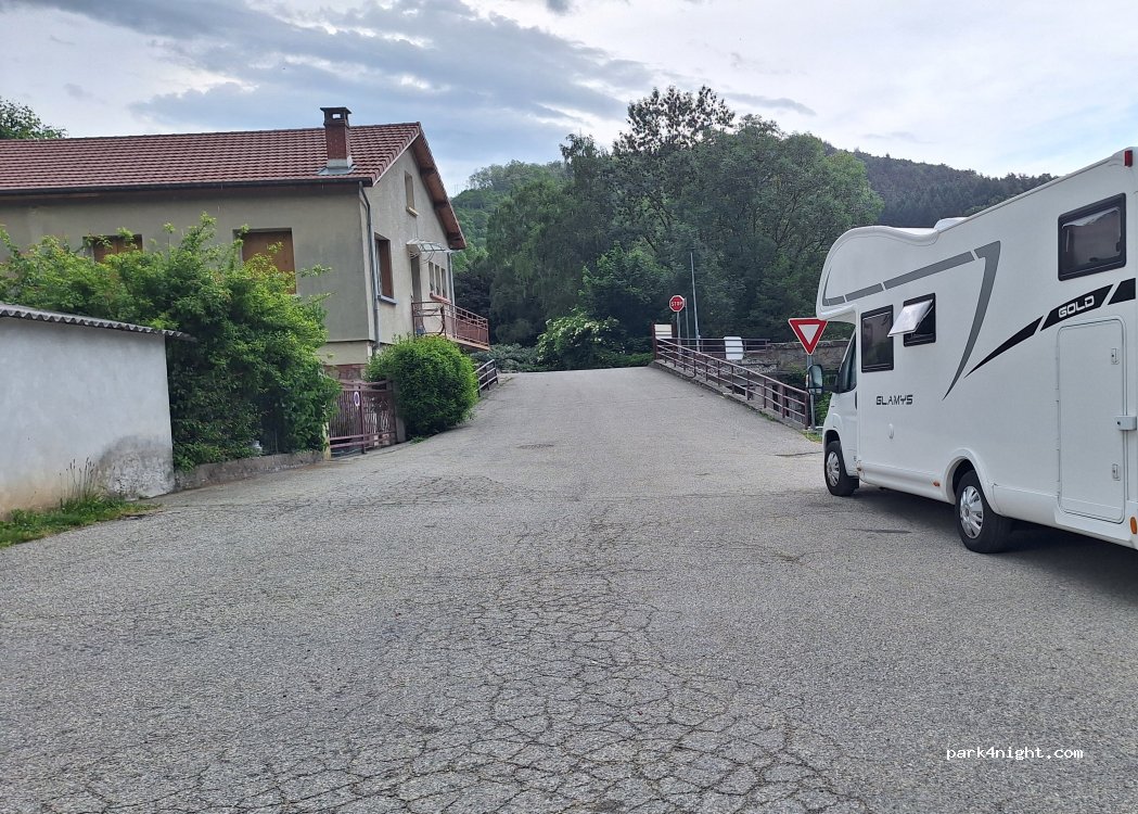 Il nous a semblé que le terrain en gore pouvait aussi servir de parking. Ça peut être bruyant à cause de la rivière.