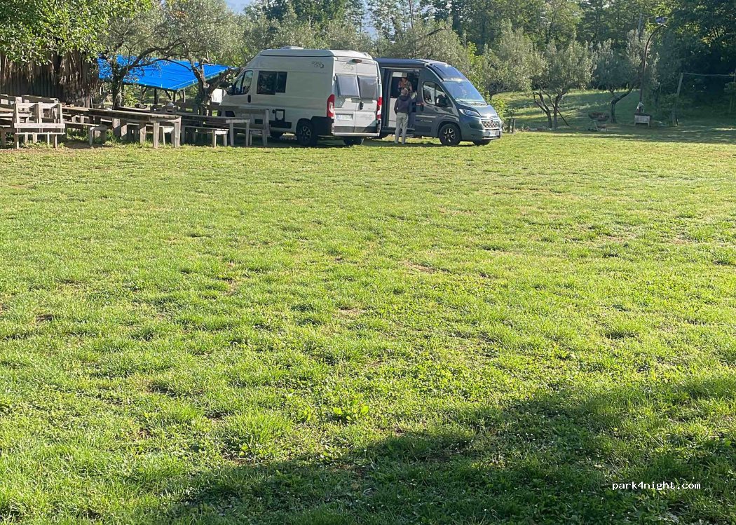Wunderschöner grüner ruhiger Ort. Der Weg dahin ist kein Problem nur die letzten Meter geht es über eine unbefestigte Straße das war mit unseren 7m Wohnmobil aber kein Problem.Wir haben eine Nacht an diesen Wunderschönen Ort verbracht Die Wiese ist groß,die Sanitäranlage ist sauber Giuseppe hat uns mit eine Tasse Caffè empfangen,am nächsten Morgen zum Frühstück mit Crossoint und Caffè verwöhnt.