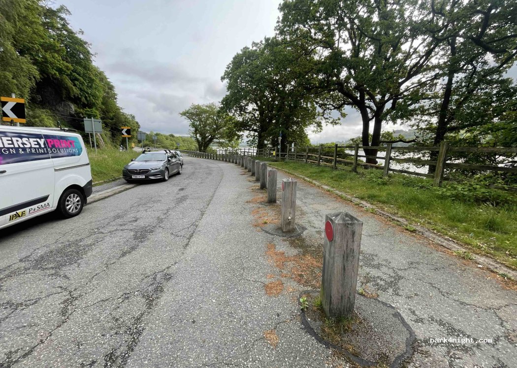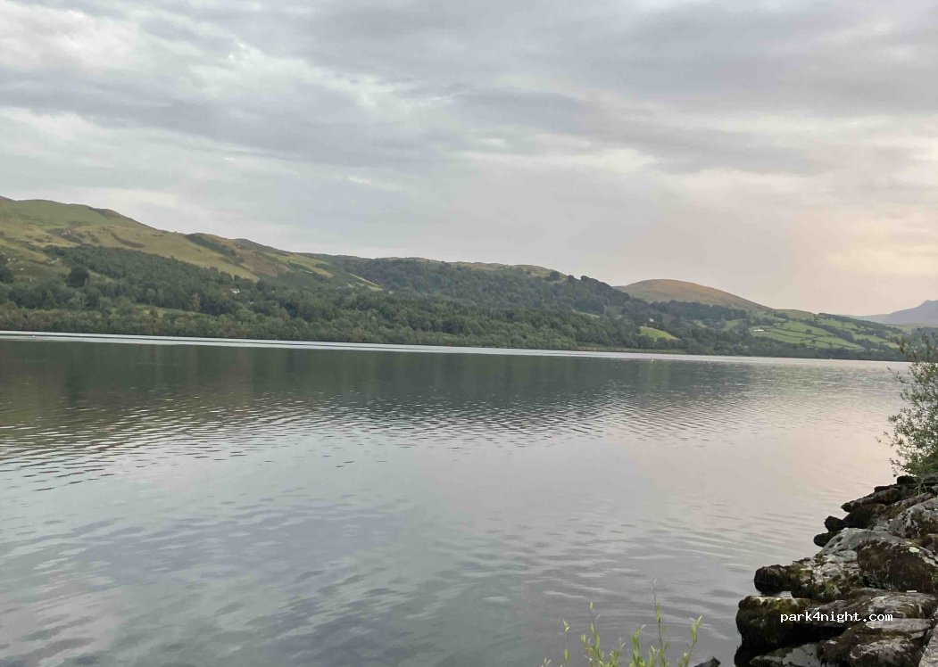Right next to Bala lake, there is a little walk, 2 minutes drive to Bala lake car park. This park up is quite close to the road but after around 11 it goes very quiet. it may be a little tight for wider vehicles