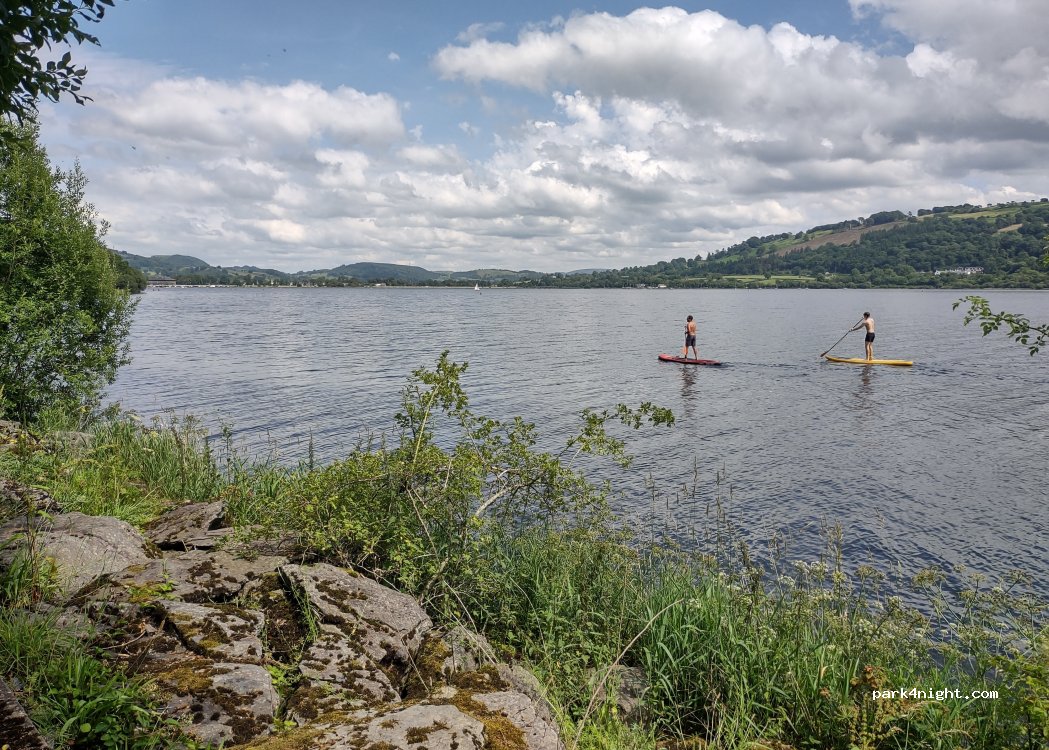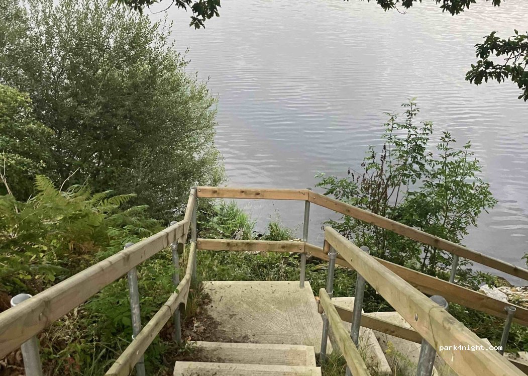 Stayed here last night. No problems. Steps down to the lake. Lovely views. 2 minute drive to main car park for activities.