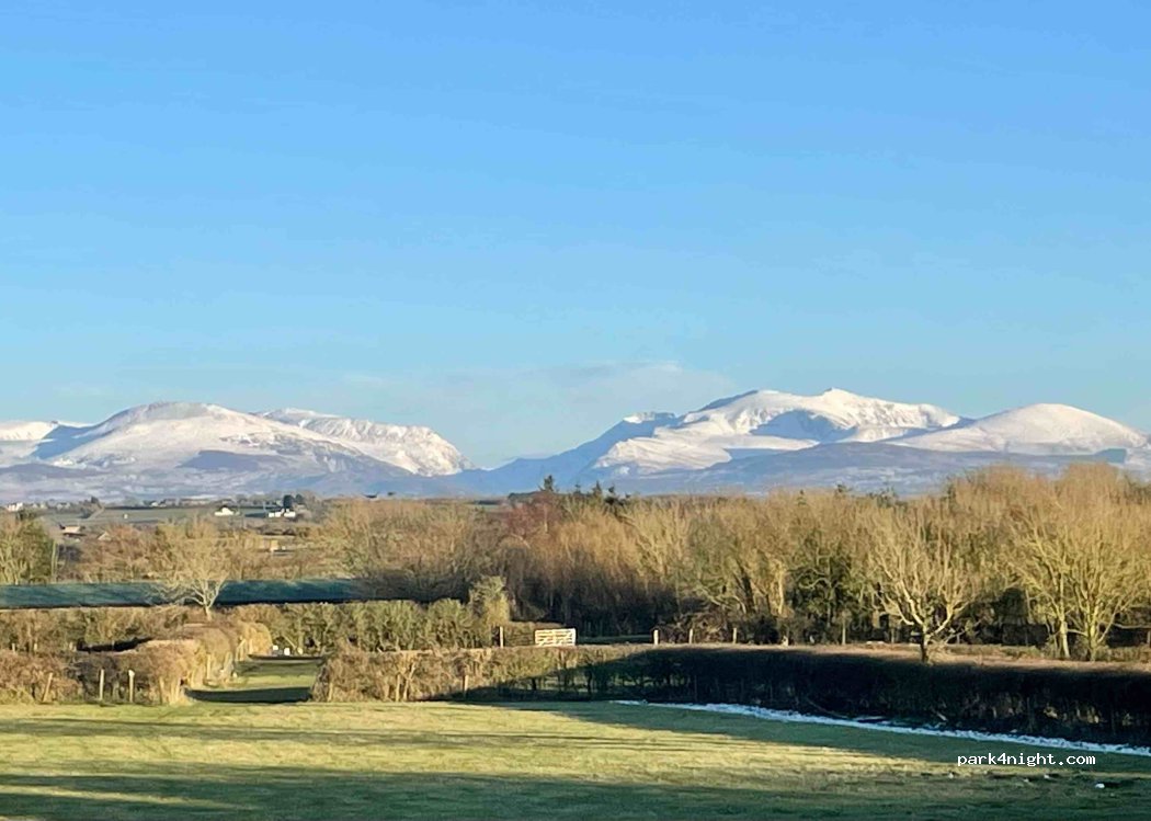 new aire motorhome stop five hard standing places level and bordered by sleepers to keep everything near and tidy . views of farmland with mt Snowdon in the distance,quiet and peaceful . black waste and water available to give the aire 5 stars . thank you for a pleasant stay .