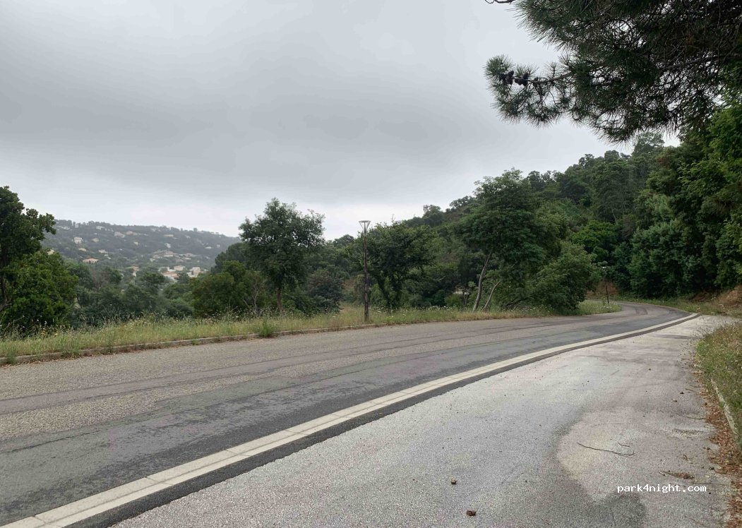 Quiet street, space for several vehicles. Below the starting point for hikes.