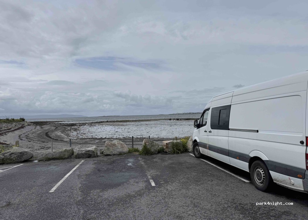 Super emplacement, accessible même au camping car sur les 4 places devant la barrière. Il y a des toilettes de chantiers accessible toute la nuit et des toilettes en dur la journée, ce qui est très pratique ! Le clou du spectacle c'est la vue incroyable sur une plage casi déserte. C'est vraiment un spot idéal proche de Galway, car la ville n'accepte pas les van et camping car.