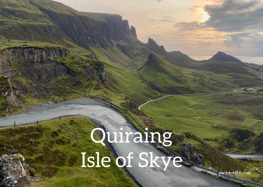 Unique parking pour visiter les Quirang. Interdit la nuit! C’est un endroit exceptionnel à ne pas manquer. Des randonnées existent, ne partaient pas si vite! Aujourd’hui il existe un grand parking, plus rien à voir avec les photos. Soyez attentif à l’endroit ou vous vous garez car il y a des panneaux et des places spécifiques. 3£ les 3h ou 5£ les 6h.