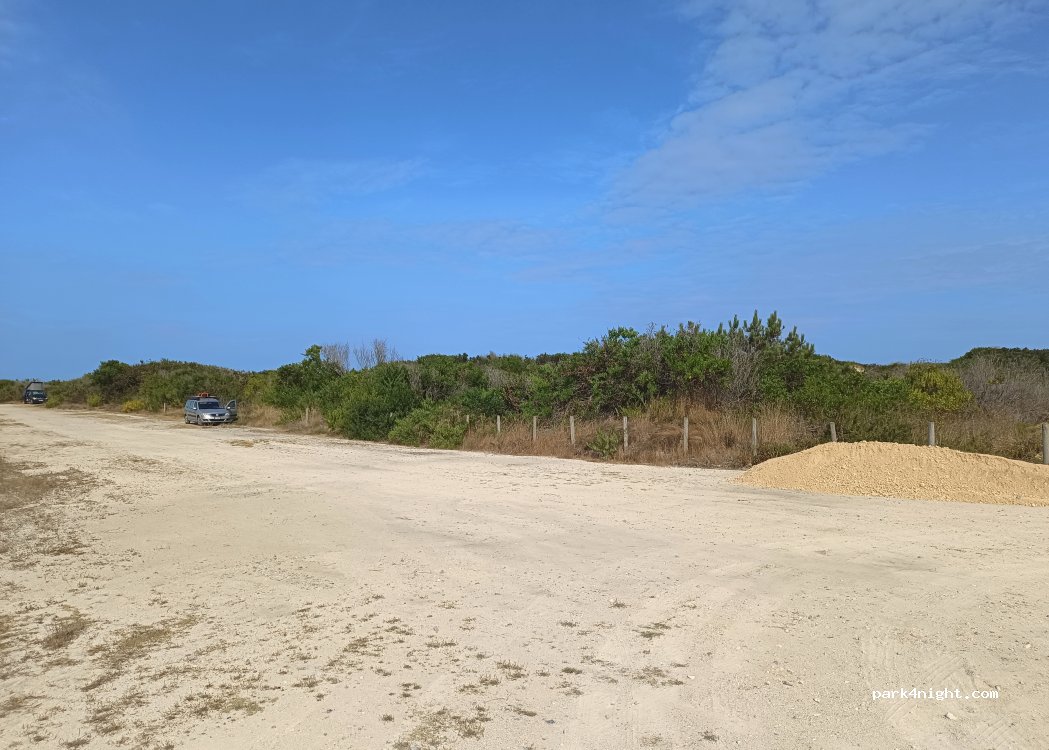Accès depuis le parking de la plage (autre aire signalée à proximité): cette piste derrière les dunes parfaitement accessible offre de bien meilleures possibilités de passer la nuit tranquilou, sans s'aventurer trop loin toutefois (risque d'ensablement en bout de piste). Accès à l'immense plage de sable fin (gardée en face du parking) en traversant les dunes. Aucun service mais bien plus romantique sous les étoiles, ceux qui veulent leur confort iront dans les nombreux campings qui bordent la côte