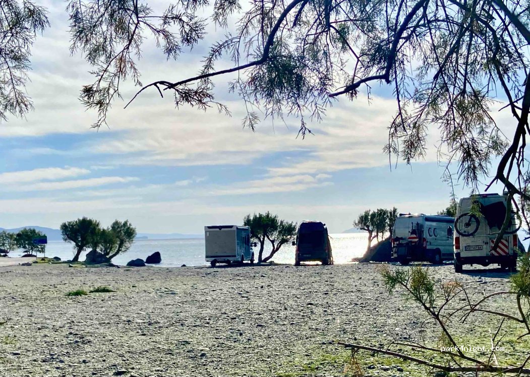 De foto's die hier staan geven geen goed beeld. Grote onverharde plek waar wel 40 auto's stonden 16 mei. Beide zijden van de P strand met ligbedden. Toeristisch. Ook 2 tavernen. Wij hebben geen foto's gemaakt. We wilden snel weg. Voor overnachting misschien goed. En in laagseizoen.