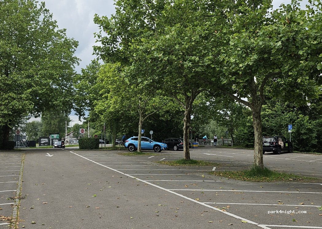 Ne pas se garer sur plusieurs places ! Un surveillant désagréable de la piscine est venu nous prendre en photo et à sois disant appelé la police. Nous sommes restés dormir bien parqués sur une seule place et n'avons pas été dérangé. Parking payant le jour.