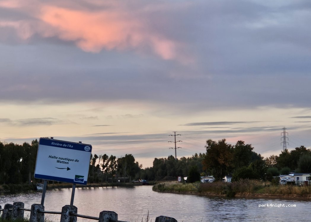 Aire calme et propre, commerces à proximité, balades à faire le long de la rivière Aa. Petite halte agréable avant d'aller en Belgique