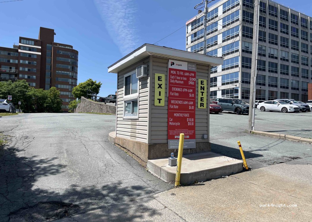 Estacionamiento cerca del centro de Dartmouth y del ferry a Halifax. Más de 200 plazas, algunas llanas y otras con pendiente. Tarifas vigentes de 6:00 a 18:00. Se puede pagar con app o máquina. Abierto 24/7.
