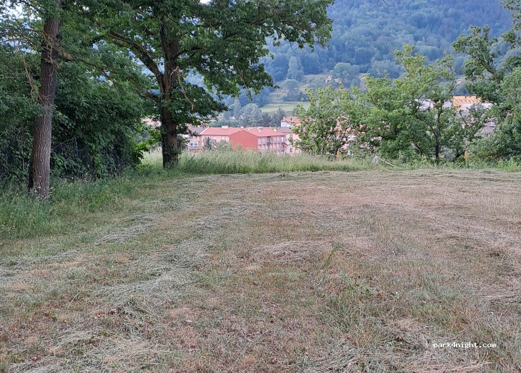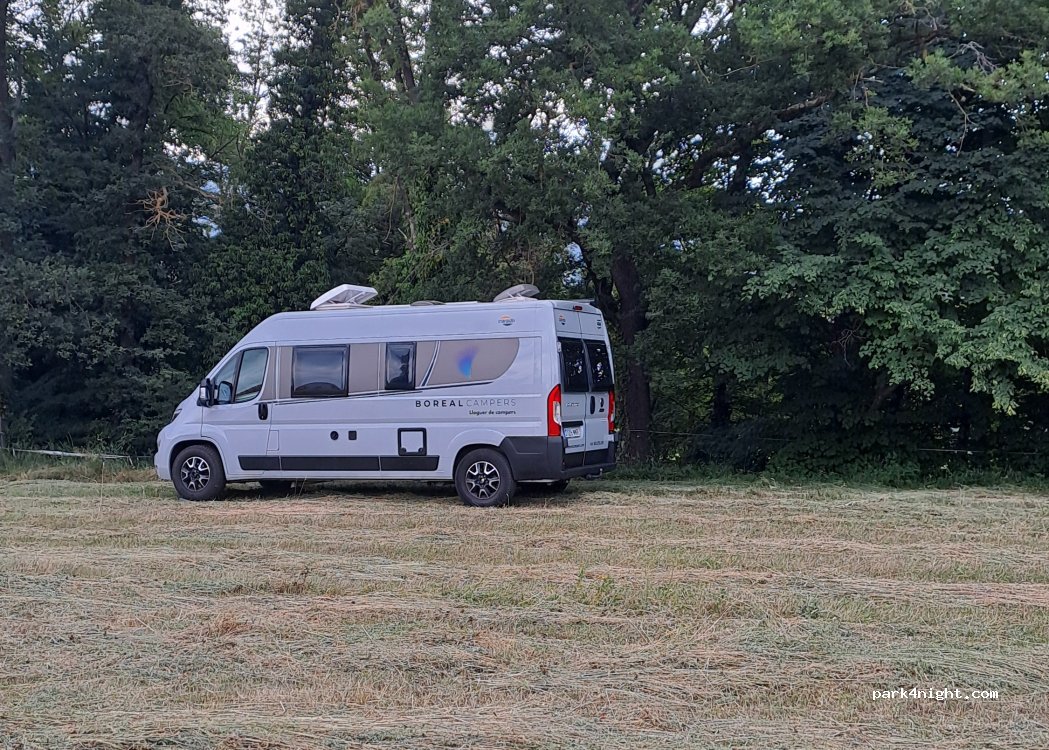 Très grand parking en herbe, avec quelques arbres en bordure du terrain. Il est tout à fait possible de passer la nuit ici et sans être les uns sur les autres, comme au parking P2, à côté du pont médiéval. Merci à ceux qui diffusent des informations, de le faire à bon escient, cela évite le doute parmi les utilisateurs. La seule interdiction concerne le camping, ce qui est tout à fait normal.