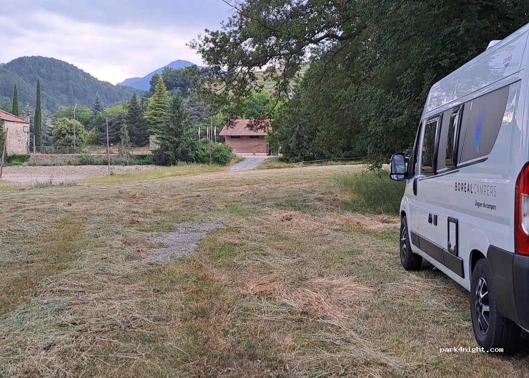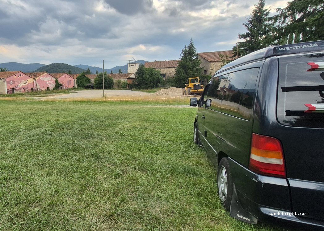 C'est une esplanade verdoyante, légèrement en pente ; il suffit de trouver un terrain stable. L'entrée indique P3, parking 3, le camping est interdit. Il n'y a pas de barrières, juste une rampe en gravier. Tout près du village, très calme, avec peu de circulation. Il y a de l'ombre le matin, mais pas l'après-midi. Près des gorges de Matalatosca.