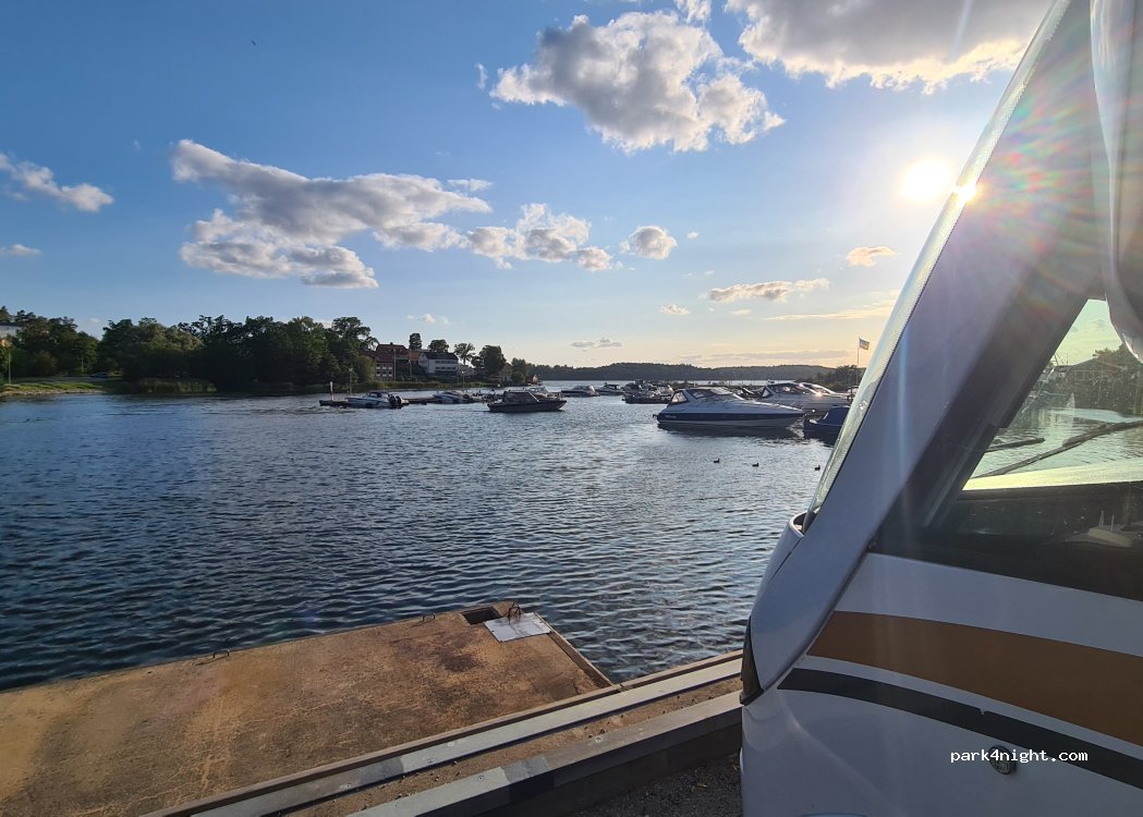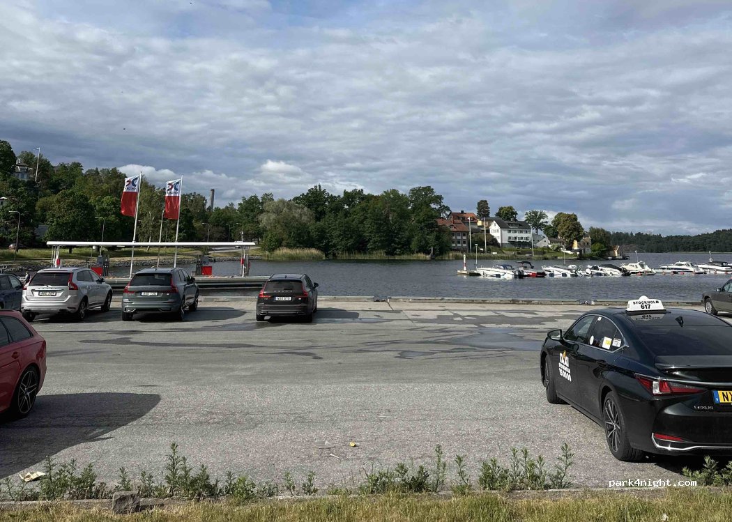 Hier kann man bis zu 24 Stunden parken (gemäß der Parkregel in Stockholm) und hat einen schönen Blick aufs Wasser. Direkt daneben befindet sich eine Tankstelle mit Toilette, die immer geöffnet ist und benutzt werden kann. Der beste Platz bisher in der Nähe von Stockholm. Parkmöglichkeiten gibt es auch in der Nähe.
