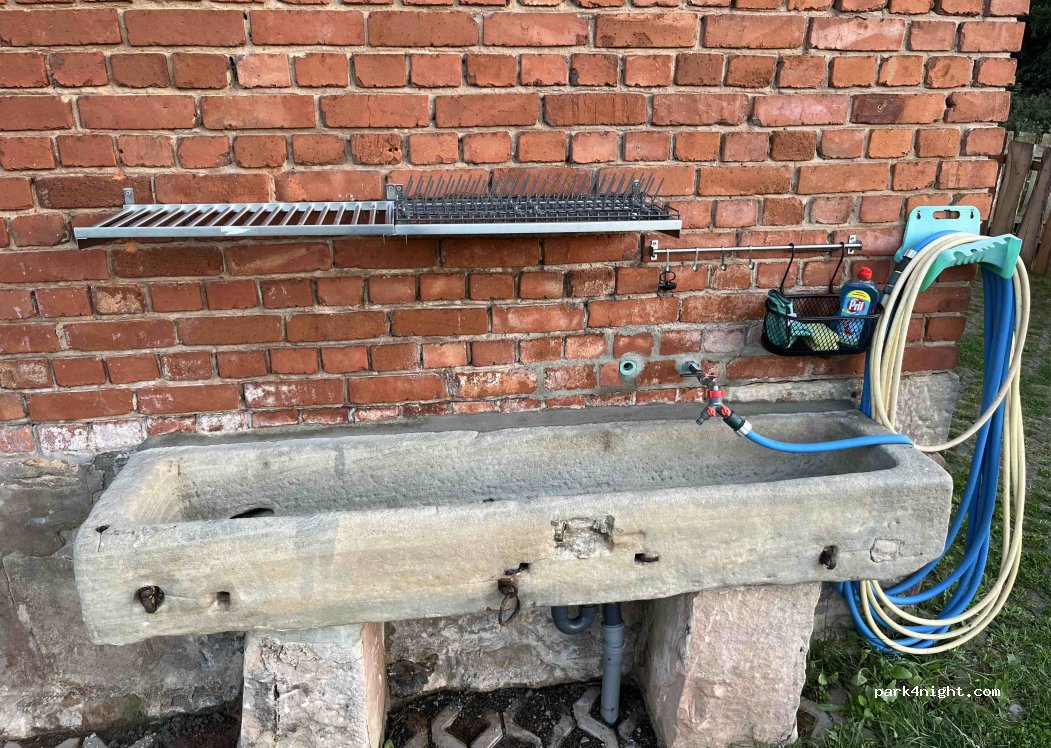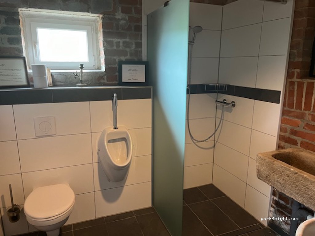 Ein sehr schöner Stellplatz ,idyllisch gelegen mit großer Wiese zum hinstellen oder Rasengitterstellplatz . Alles was man braucht ist vorhanden. Dusche ,WC ,WLAN, Strom alles in einer urig ausgebauten und liebevoll eingerichteten Scheune und im Aussenbereich eine Spülmöglichkeit für Geschirr . Von der Gastgeberfamilie bekommt man alles gezeigt ,wir hatten 2 schöne Tage hier