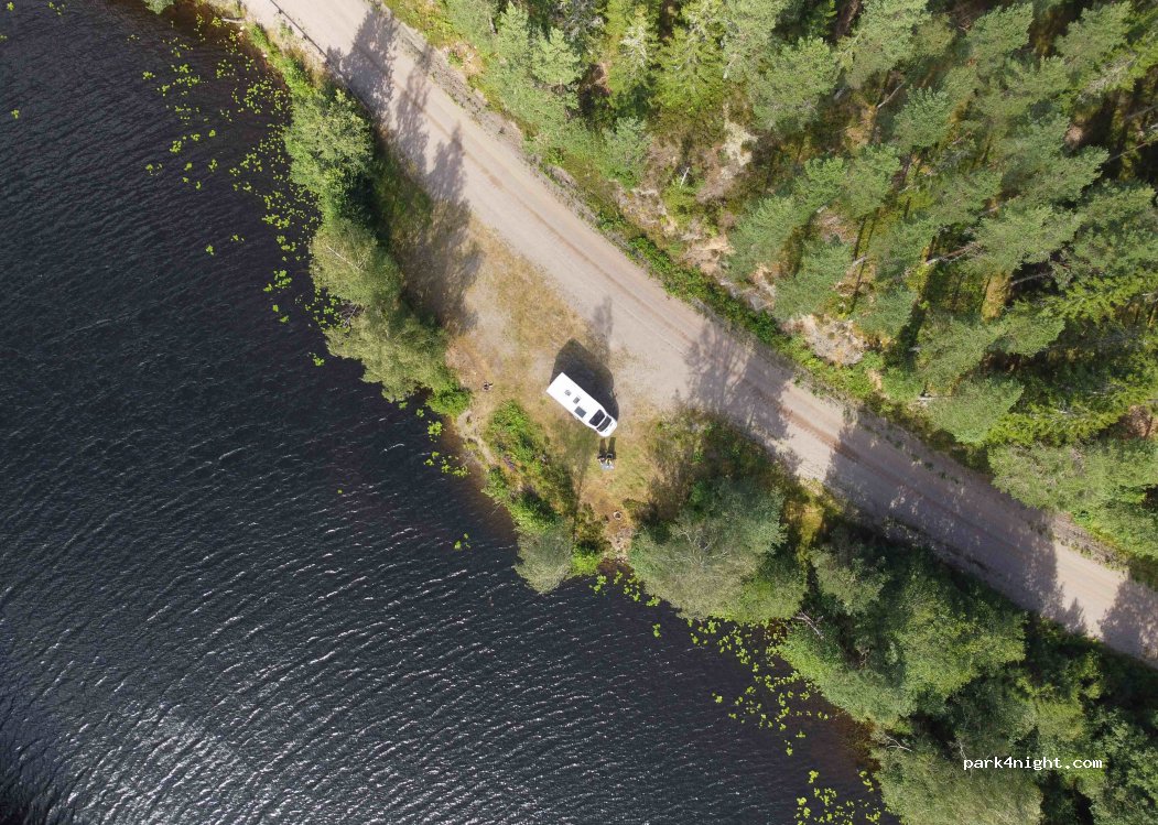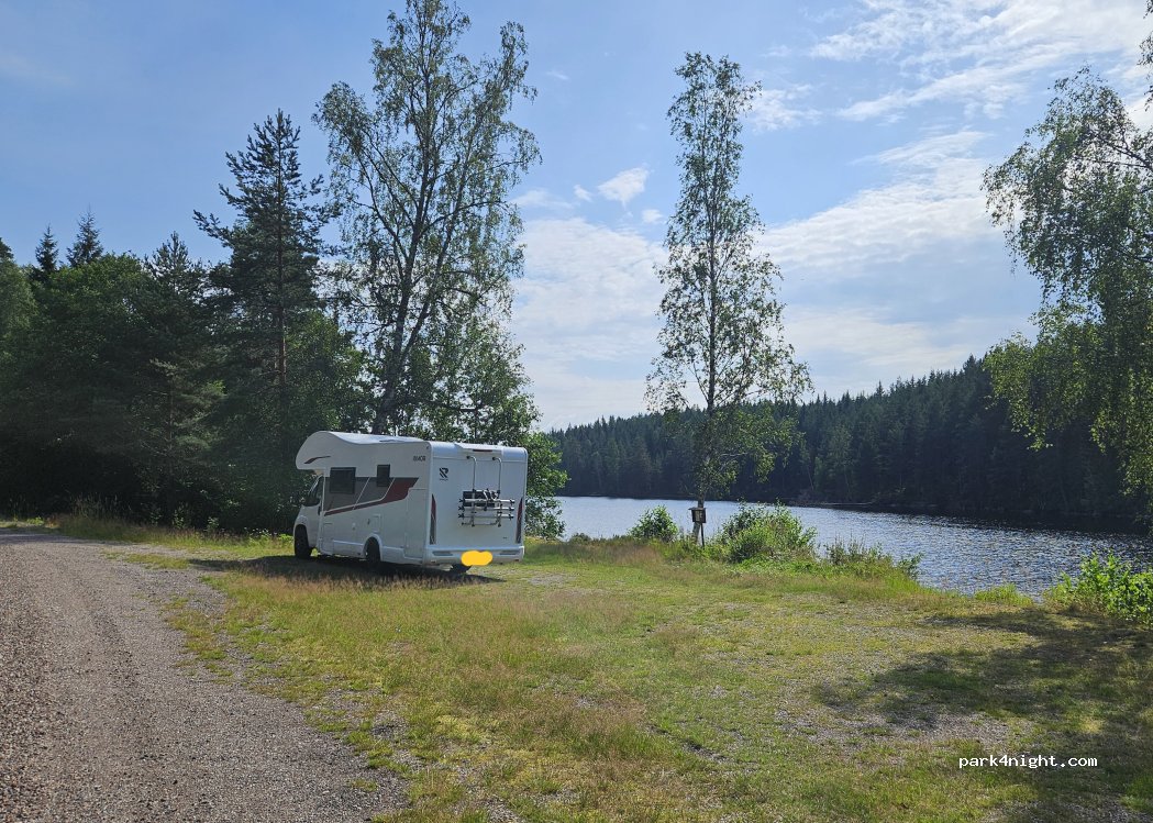 Beautiful spot next to a lake. Ideal for a swim and enjoying the nature. Gravel road to the spot (very doable) that has one car an hour passing by. We arrived first, but ended sleeping here with 4 campers.