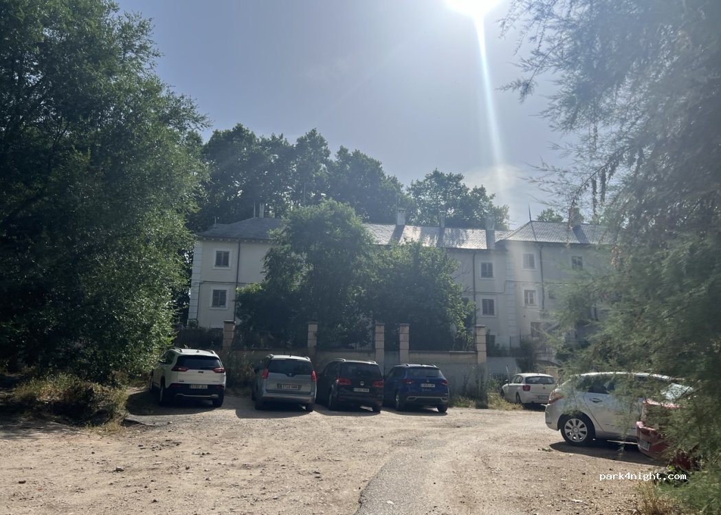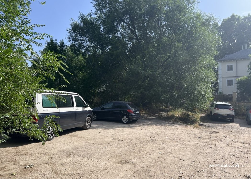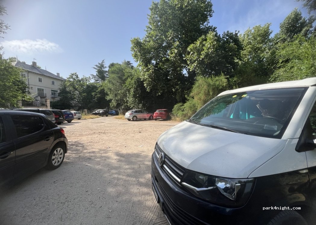 Aparcamiento pequeño y tranquilo. Sin servicios. Nos alojamos allí una noche sin ningún problema. Se accede al aparcamiento por la callejuela que bordea el río.