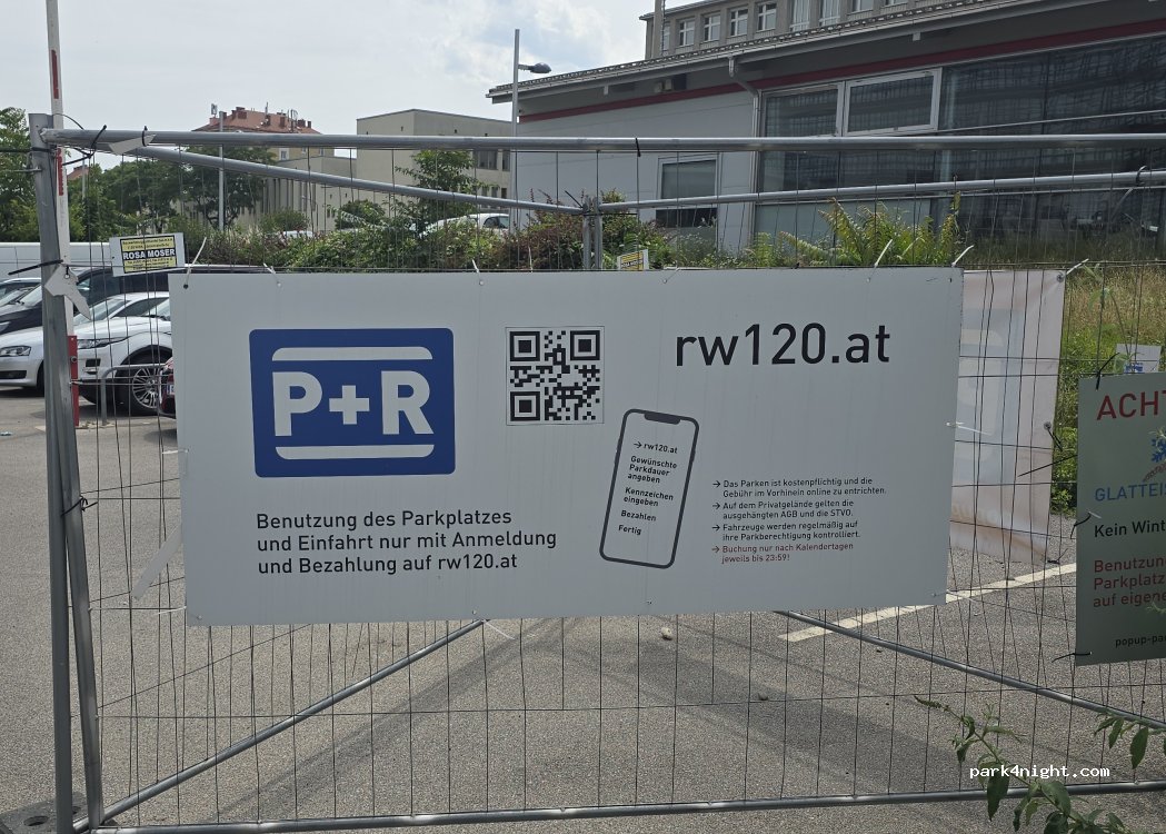 P+R-Parkplatz in Stadtnähe. 20–30 Minuten bis ins Zentrum von Wien. Liegt an einer Hauptstraße, wirkt also sicher.