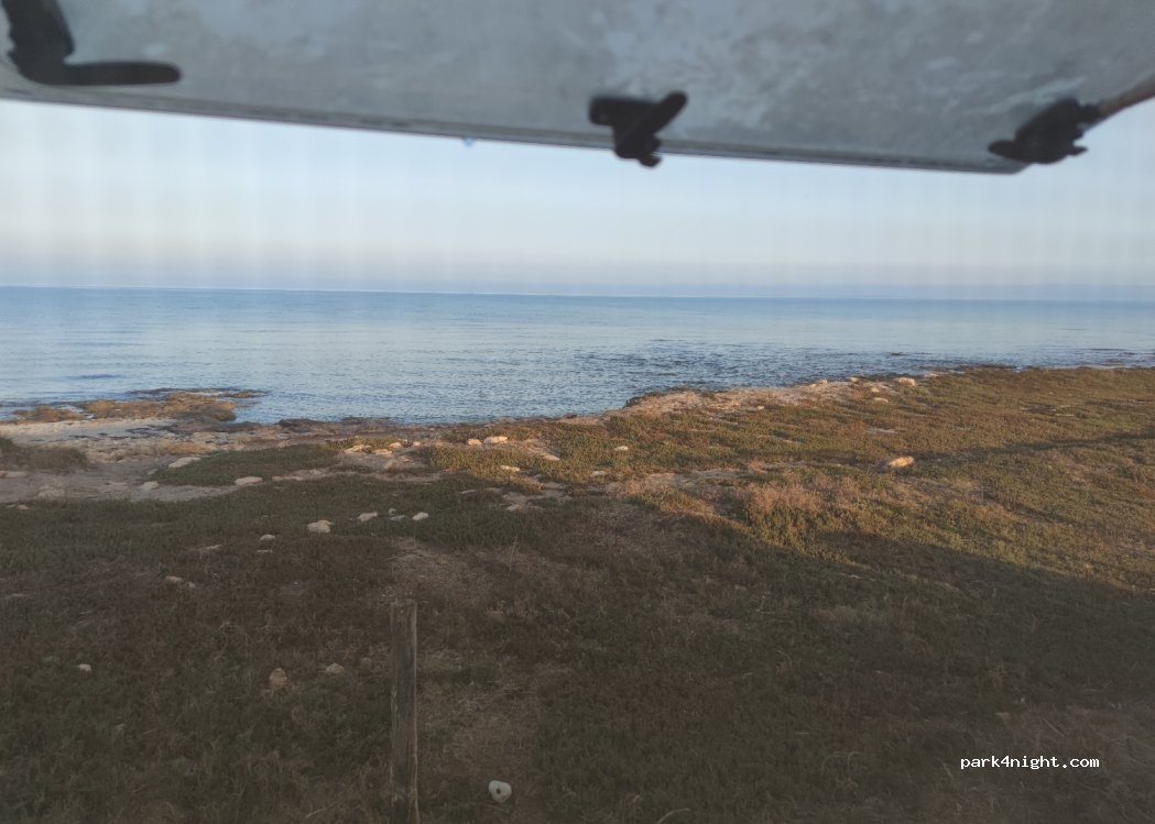 Small parking by the sea. Attention mosquito attack at sunset!