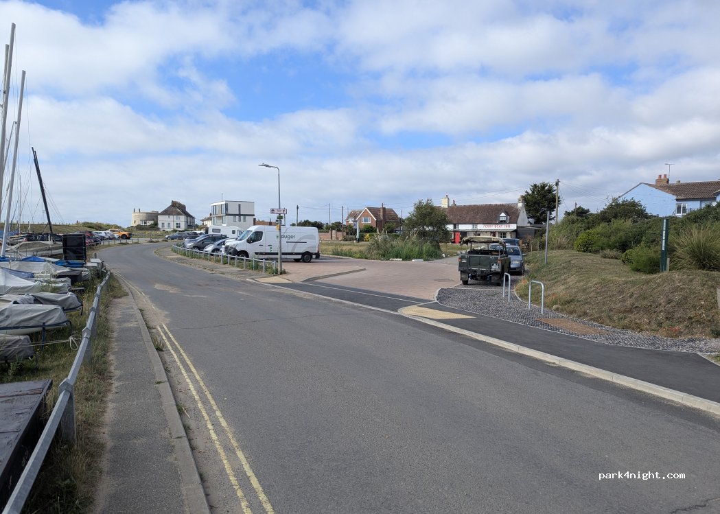 Arrived at 16:30 - plenty of room. Had a nice meal and drinks in The Ferryman. The staff were friendly and helpful. I asked if this patch of parking belonged to the pub. She explained that it's council owned, and free to park at the moment. Thought I'd have an early night but cars zooming up and down the road until gone 23:00. Good spot other than that.