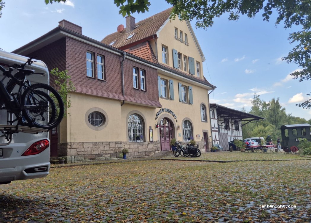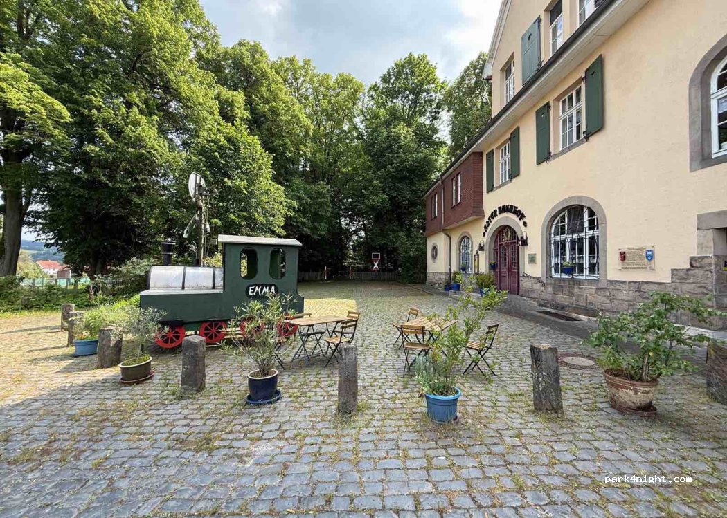 A charming, quiet parking space at the Old Train Station in Gemünden (Wohra), surrounded by trees on paved ground. Electricity and water are available at the building, and use of the toilet and shower is available upon request. Waste disposal is not available. On weekends, the restaurant in the historic train station invites you to linger with dishes made from regional products. Registration is mandatory! It's best to call (or use the answering machine if you have one). Cash only.