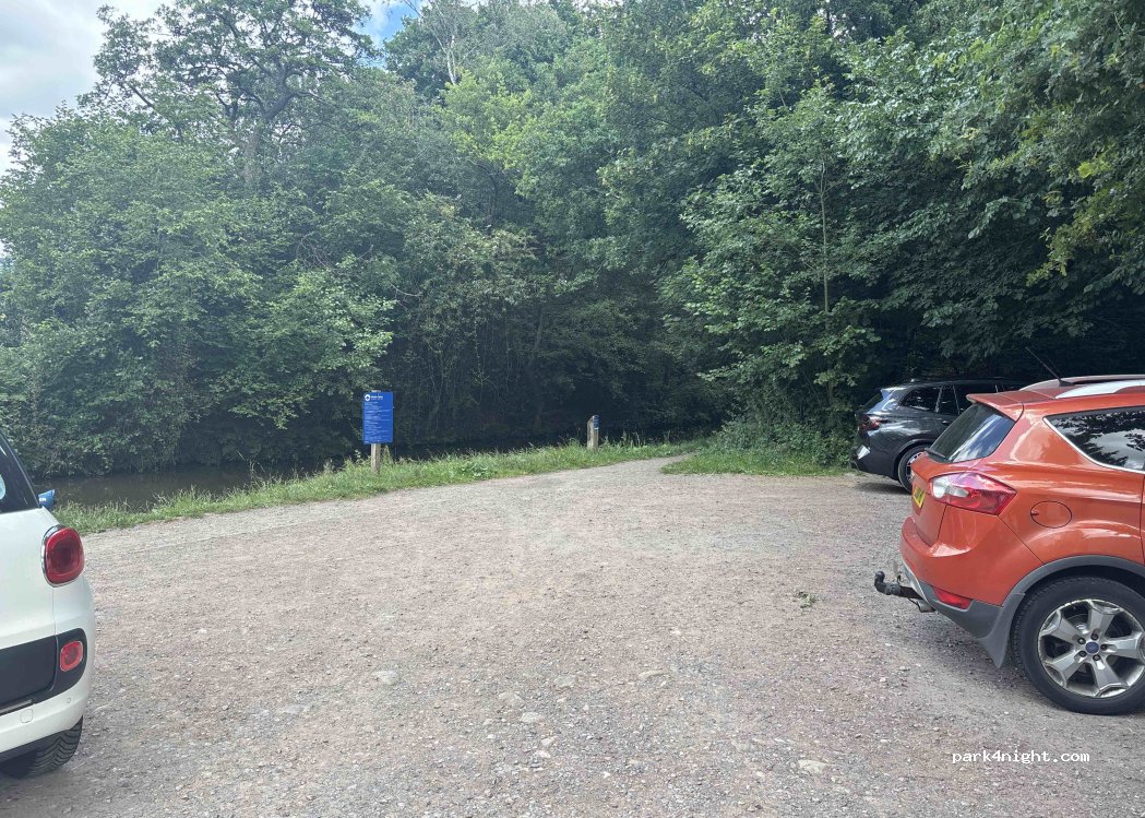 had a great night's sleep here. I even slept in till 12! which for me is unheard of! Don't park under the acorn tree! aha other than that a, occasional passing car but was quiet after 11pm. 1 other van there and a boat moored up, A car came in at 11.30 and sat on their phone for a hour and then looked like went to sleep. no issues felt safe.