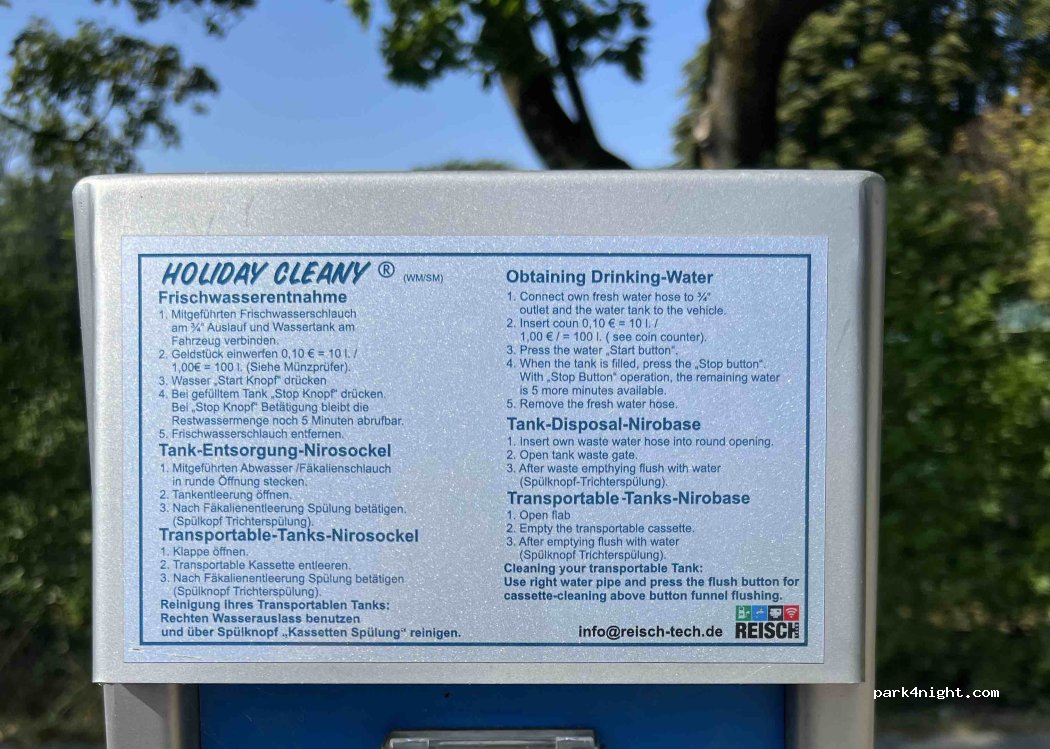 Glatte 5 Sterne, gerne noch mehr. Hier gibt es eine super Möglichkeit, für die Ver- und Entsorgung. Super gut zu erreichen, sauber und alles was man benötigt. Auch vom Parkautomaten nicht abschrecken lassen, die ersten 3 Stunden sind kostenfrei, somit genügend Zeit um alles zu erledigen. Wobei ich auch locker 2€ für den super Service bezahlt hätte