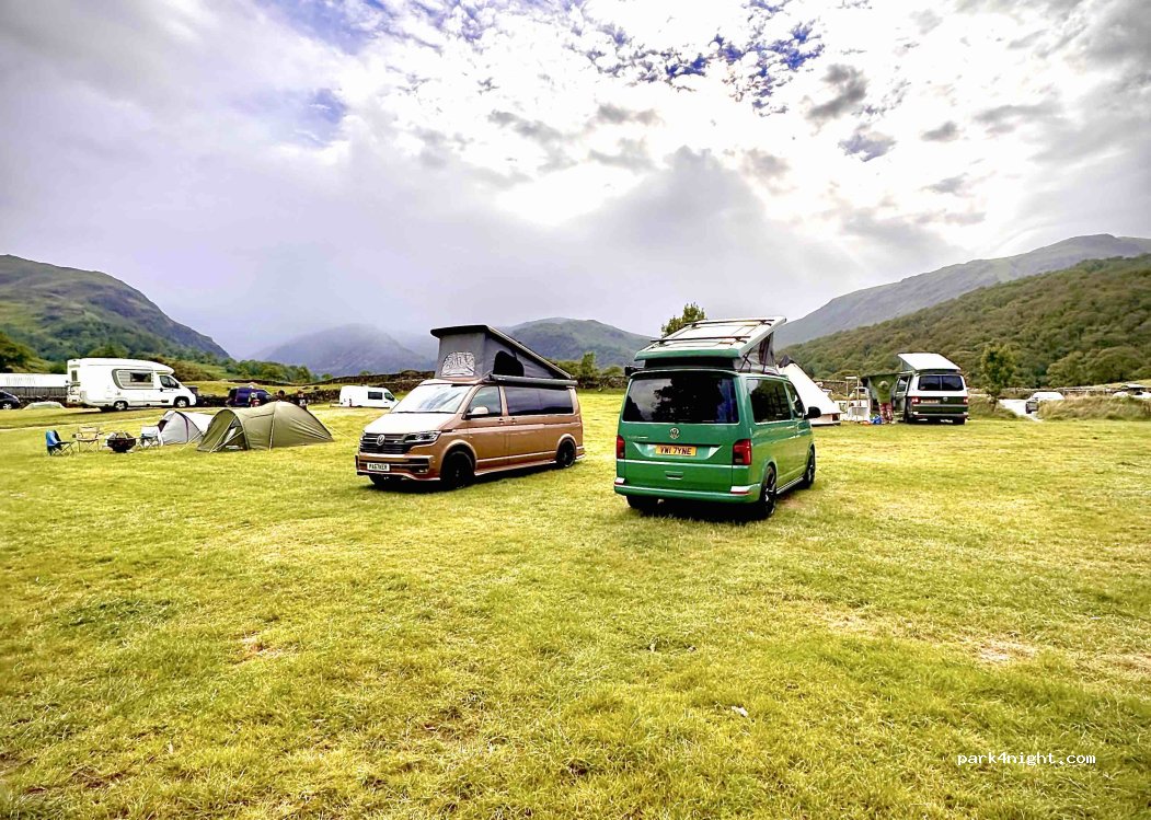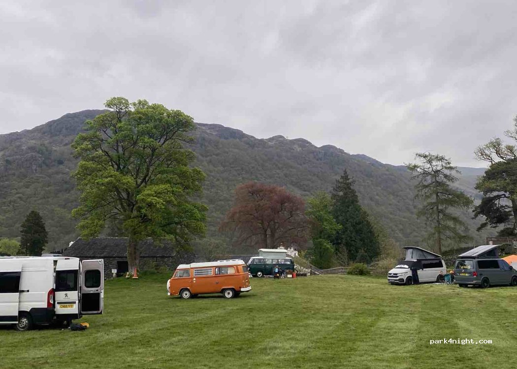 family run well kept site. two different fields. open fires not allowed but fire pits of the ground are. good 4g connectivity. porta loos and water in both fields. ideal for some amazing walks. Plenty of wild campers. early to bed early risers. highly recommend. In the valley of mountains of the lake district for vans, motorhomes and tents. pitch black and no noise after 10pm. great star gazing spot