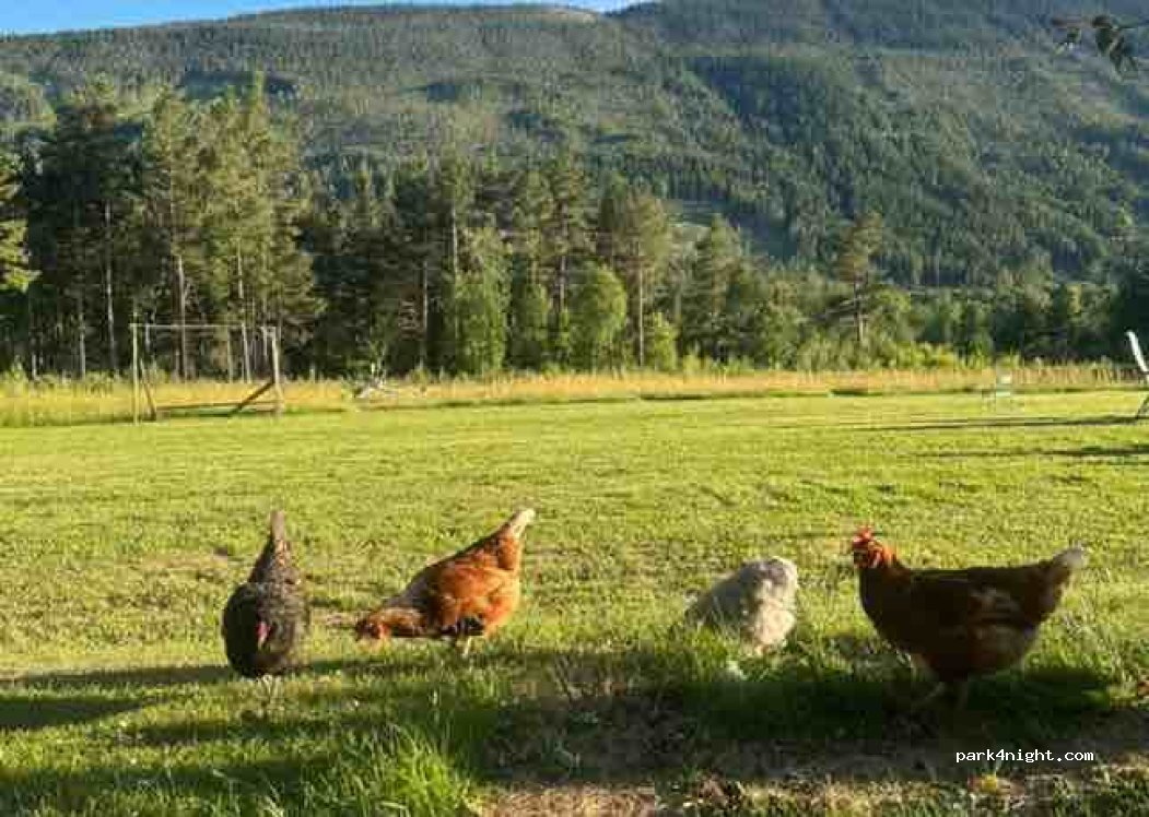 Beautiful small campsite "Budal." Carefully designed. Shower, wood-fired hot tub that doubles as a refreshing pool in warm weather, outdoor toilet, play area for children, and animals. Washing machine, shower facilities. Mountain views, maze. Two pitches available with electricity and one without. Perfect for cars with roof tents, campervans, and campervans up to 7 meters long. Dogs are welcome, but must be kept on a leash. Chickens and chicks roam freely. Luna the dog will greet you with a bark but is the sweetest dog to cuddle. No arrivals on Sundays; please leave the campsite by 12:00 on the day of departure (the hot tub was winterized from September 25th and is therefore no longer available).