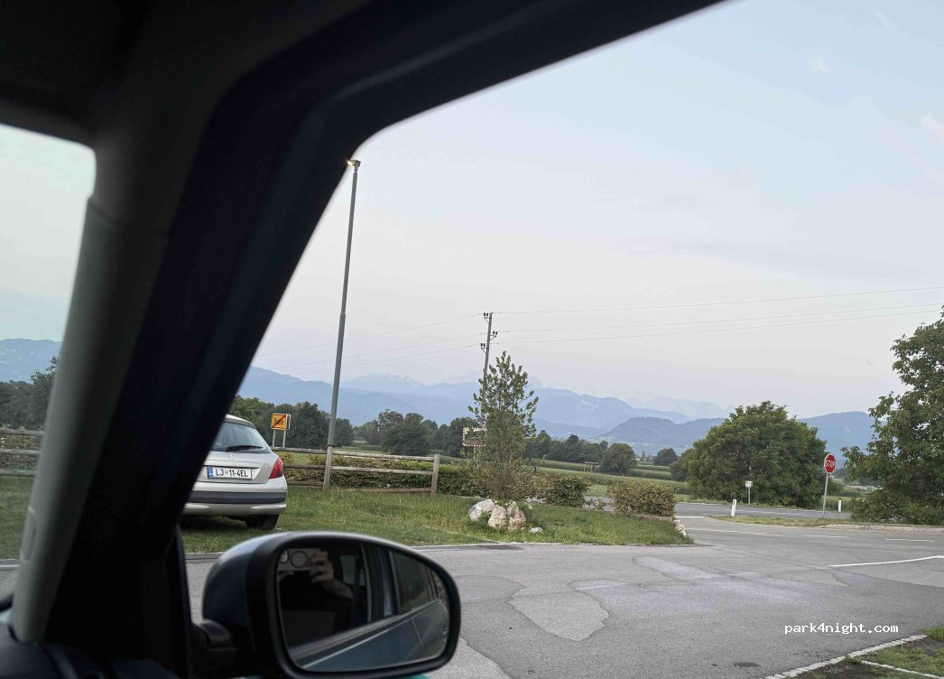 Really nice Car Park for day parking but turns out it’s Illegal to stay overnight anywhere but an official accommodation place in Slovenia. Got tapped by the police in the morning as a local called it in. Got a €41.73 fine instead of €300 because of a loophole the guy found. There is water and a bin but not worth it. Go to the paid (€40) places instead or drive over the border for the night.