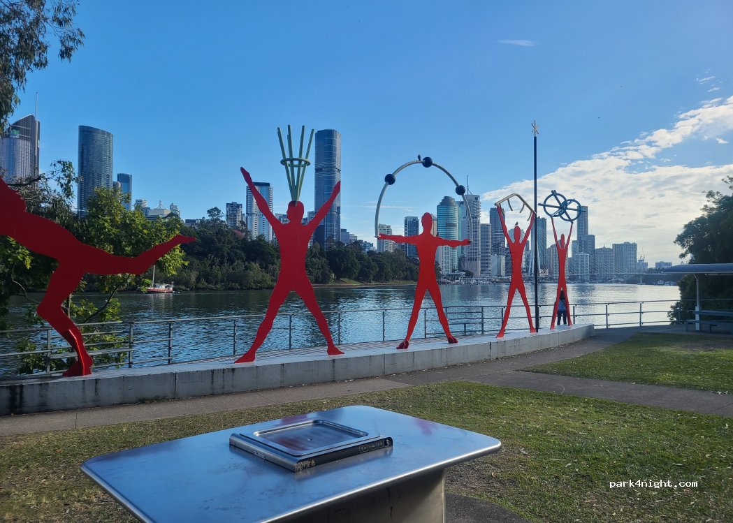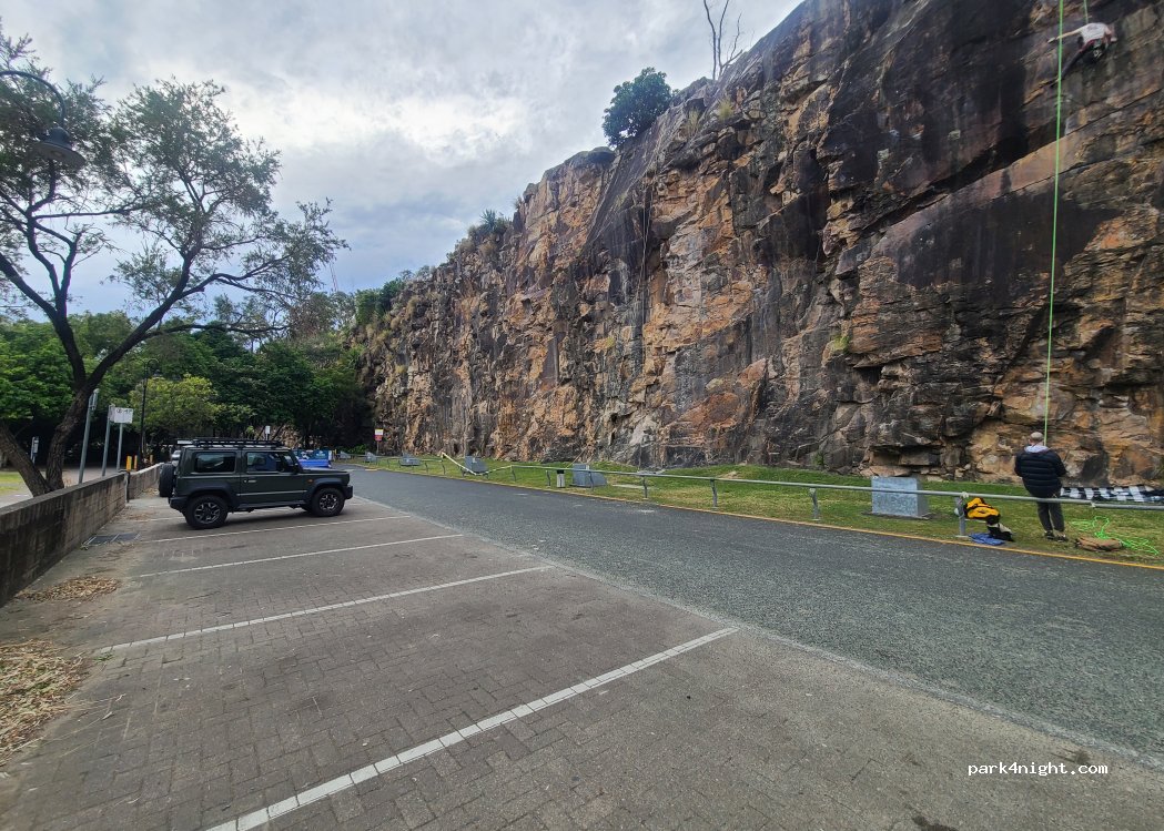4P parking lot facing the Brisbane skyline and with its back to the Kangaroo Point Cliffs. Overnight stays prohibited.