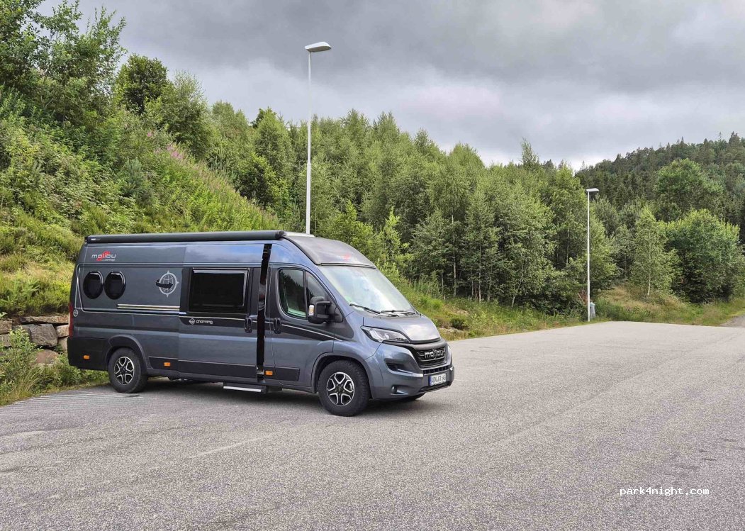 Pequeño aparcamiento pavimentado para senderismo con 18 plazas e iluminación. Las luces de la calle se apagan a medianoche. Muy tranquilo, aunque hay una carretera justo encima. Estuvimos aquí un sábado por la noche, pero no había otros servicios. Está justo al borde del bosque.