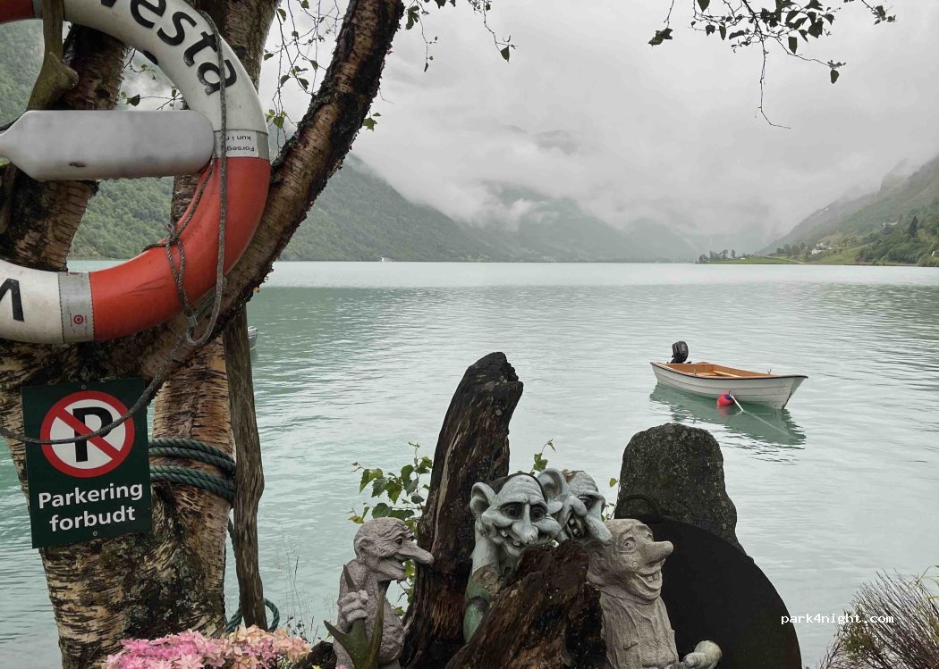 Grundsätzlich ein Platz mit schöner Lage. Leider durften wir trotz Anreise um 13 Uhr uns nicht in die erste Reihe stellen. Während des Nachmittags wurde die erste Reihe mit Wohnmobilen belegt, da war nichts mehr übrig von der schönen Aussicht. Umziehen durften wir auch nicht auf Nachfrage, daher sind wir am nächsten Tag weiter gefahren, 400NOK für den Blick auf ein Wohnmobil war es mir nicht wert.