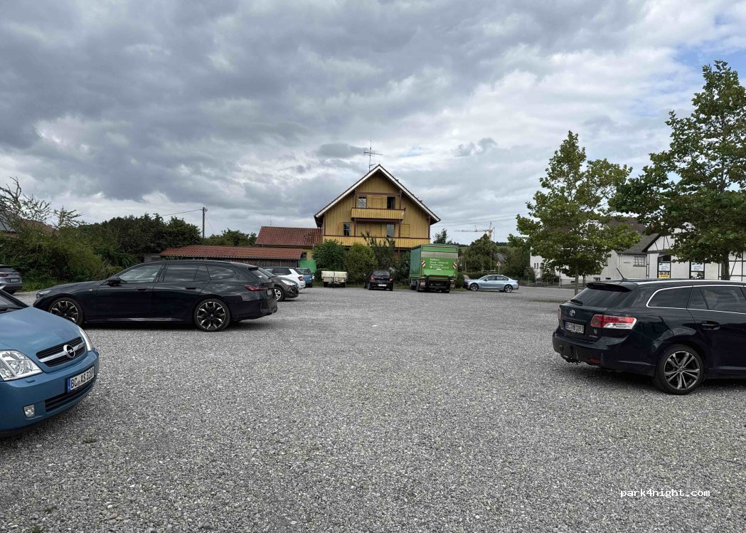 Aparcamiento de grava amplio y gratuito en la pequeña ciudad de Eberhardzell.