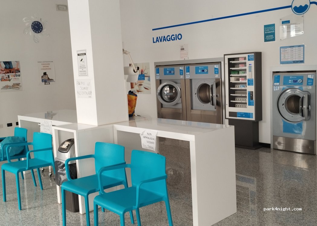 Lavanderia self-service, 3 lavatrici e 2 asciugatrici.