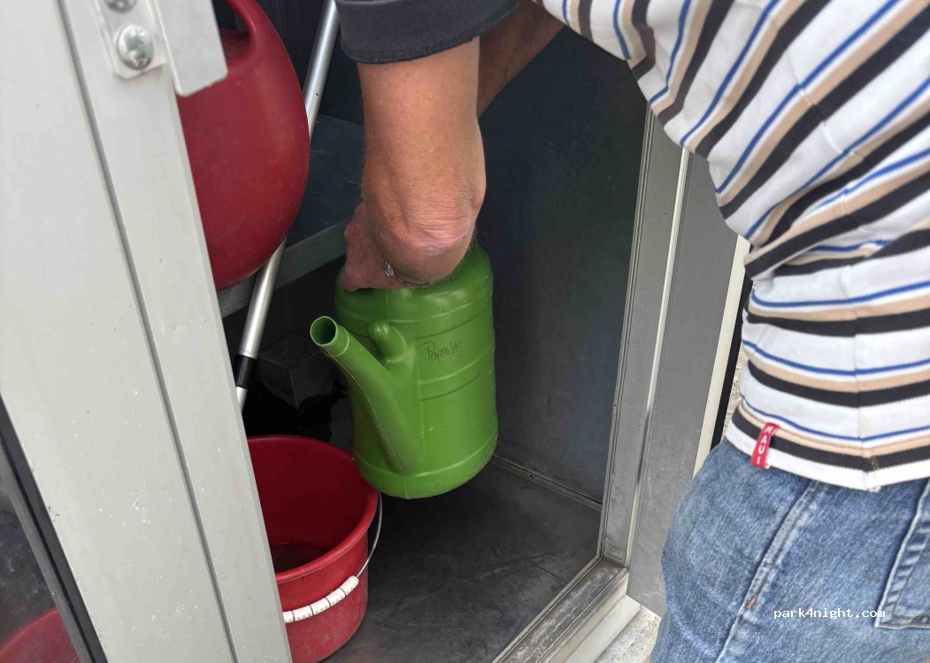 Llene el tanque de agua fresca en la gasolinera, de forma gratuita.