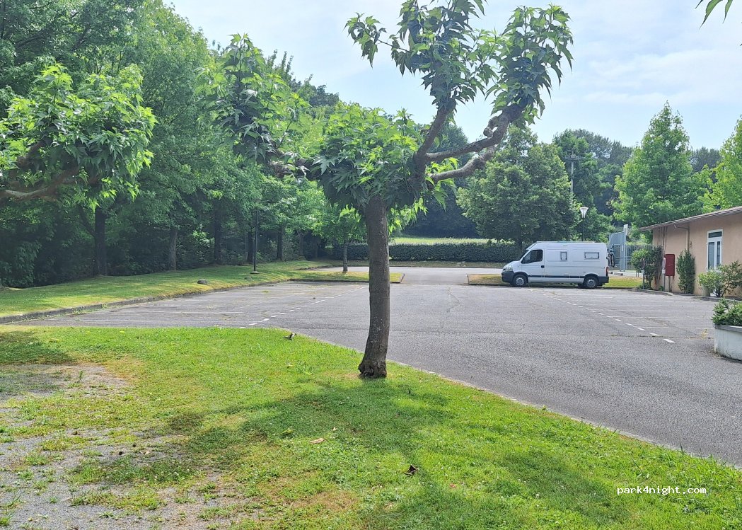 Parking près de la mairie avec table de pique nique à l'ombre et robinet d'eau. Apaisant, très calme.