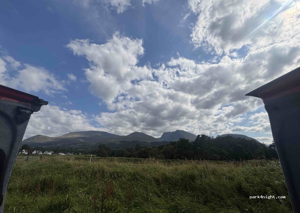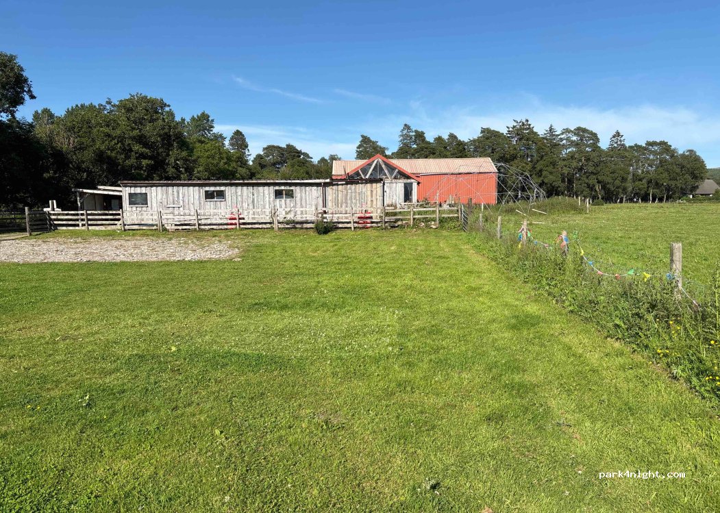 Ben Nevis Basecamp. Fenced area for camping / campervans / motorhomes on a farm. Space for 8-10 pitches. Showers and toilets but no water/greywater facilities. Online booking. Book online and just find the pitch yourself. No staff observed when we where there.