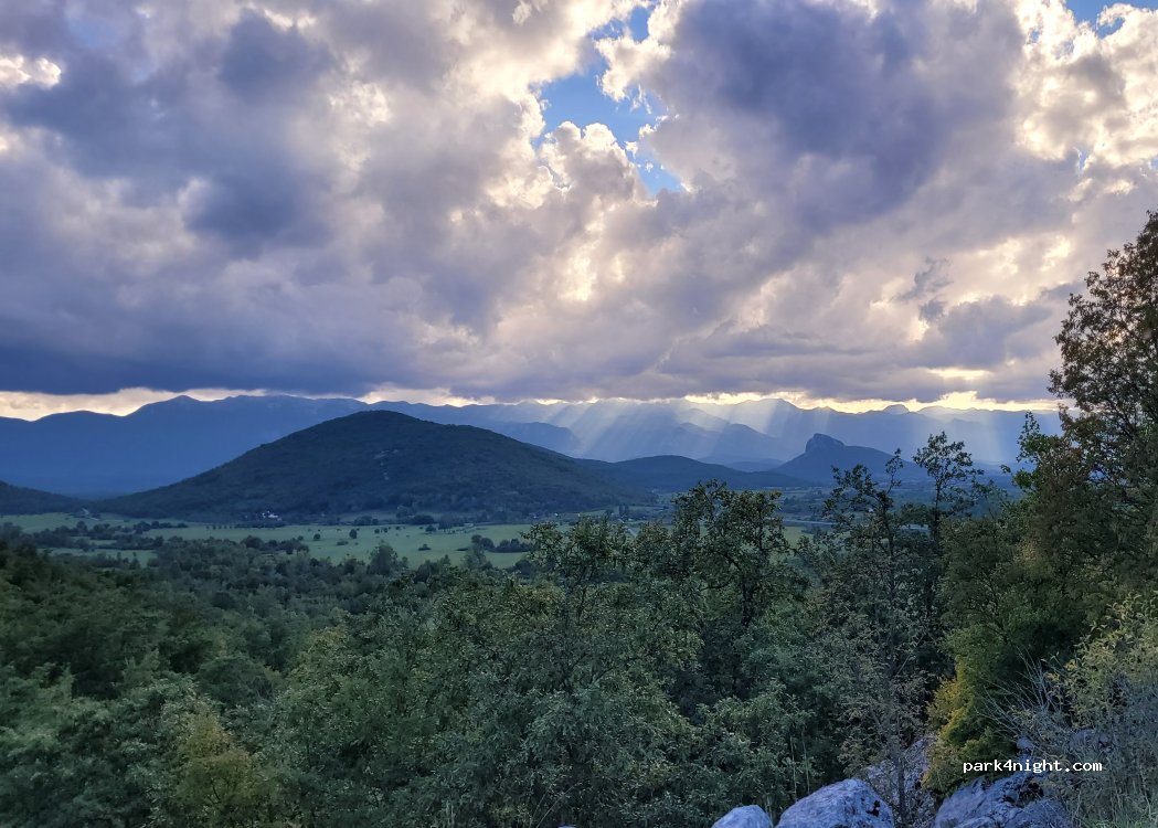 Even and quiet place. Although not far from the highway you will have the feeling of remoteness. The view is great, and even better at the monument (5 min walk up). Few cars passed by.