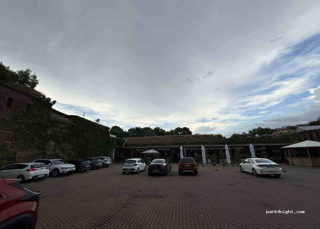 Agréable parking payant et sécurisé près d'un restaurant – camping-cars bienvenus pour la nuit.