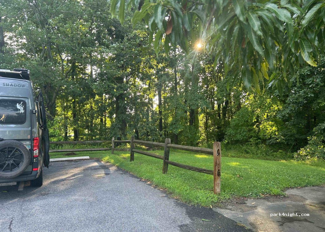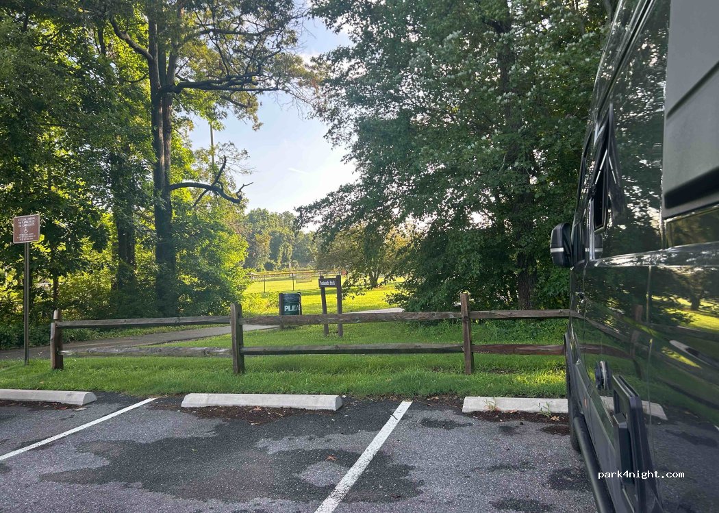 A small free parking lot where we also stayed overnight. But it's only suitable for vans and smaller vehicles. Very quiet; restrooms are located on the sports field.
