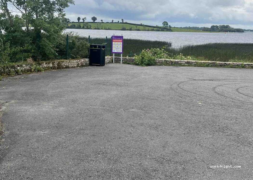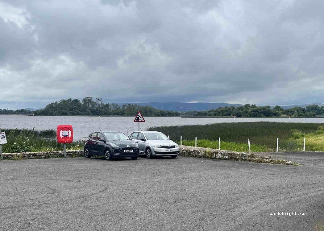 Parking avec jetée, idéal pour les petits bateaux et les paddles. Il dispose d'un banc de pique-nique et d'une poubelle. Superbe vue sur les îles du Lough. Parking plat et goudronné.