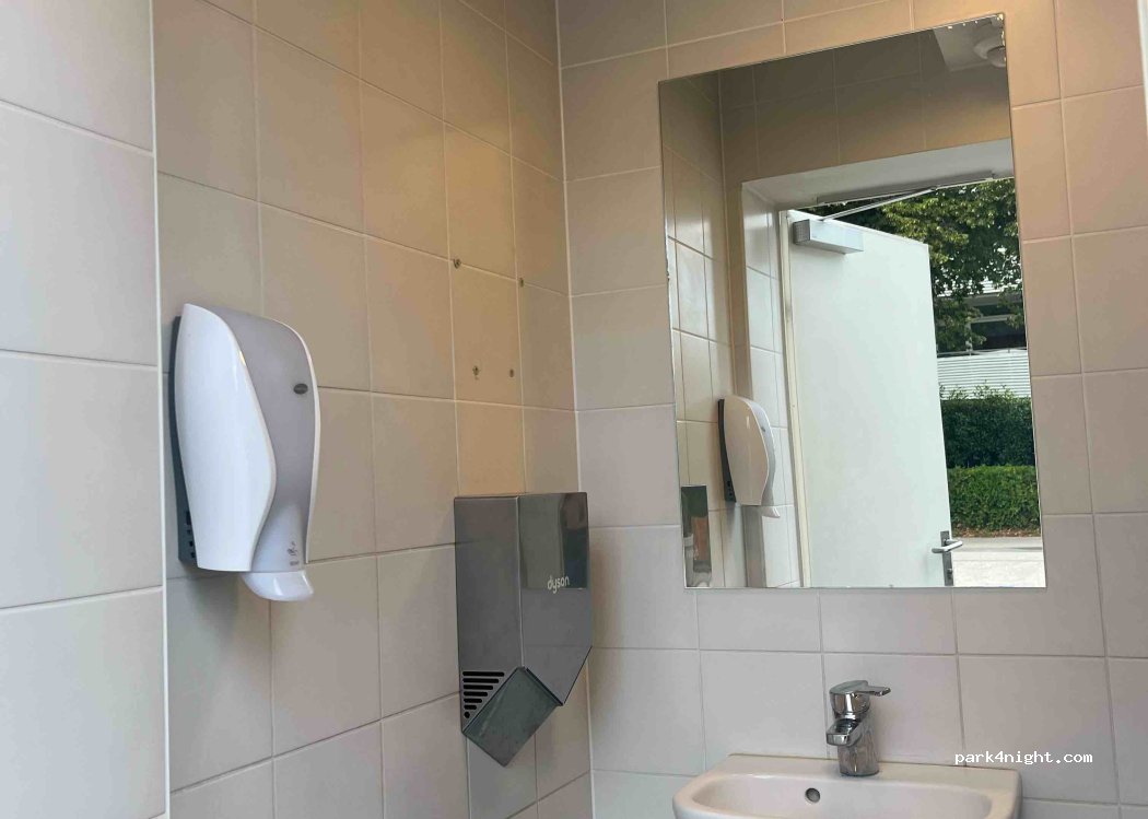 Drei sehr saubere öffentliche Toiletten, darunter auch behindertengerechte Toiletten. Parkplätze stehen in der Nähe zur Verfügung. Warmwasser ist verfügbar.