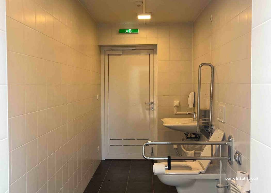 3 Toilettes publiques très propres dont toilettes pour personnes en situation de handicap. Possibilité de se garer très proche. Eau chaude.