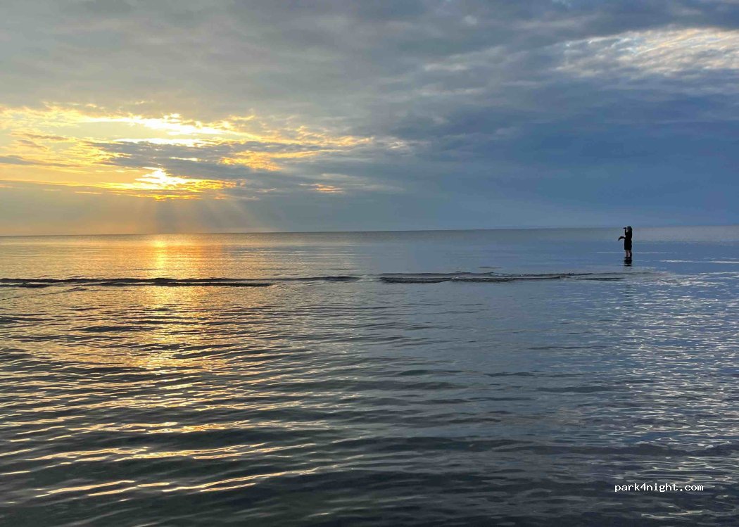 Grand stationnement de gravier et beau sentier en bois vers la plage. Seul bémol: le chemin d’accès est fermé par une porte clôture cadenassée entre 21:00 et 09:00 du matin.